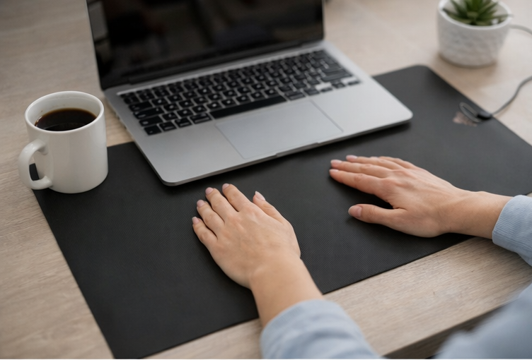 - Desktop Pad: If you prefer to keep your shoes on, you can use a grounding mousepad or a desk mat. As long as your forearms or wrists touch the mat while you type, you are receiving the benefits.